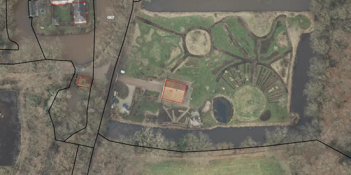 Het adres is gelegen op perceel 3738 in de sectie G en de kadastrale gemeente Tubbergen. De kadastrale aanduiding is aldus TBG02-G-3738. De gemiddelde perceeloppervlakte in de kadastrale gemeente Tubbergen is 6614,1 m². Dit perceel is met zijn 10,6 ha dus groter dan gemiddeld. Het grootste perceel in de kadastrale gemeente is 30,6 ha. Het kleinste perceel heeft een oppervlakte van 0 m². Dit is het enige adres dat aanwezig is op het perceel. De laatste wijziging in het de Basisregistratie Kadaster (BRK) was op 12-04-2022.