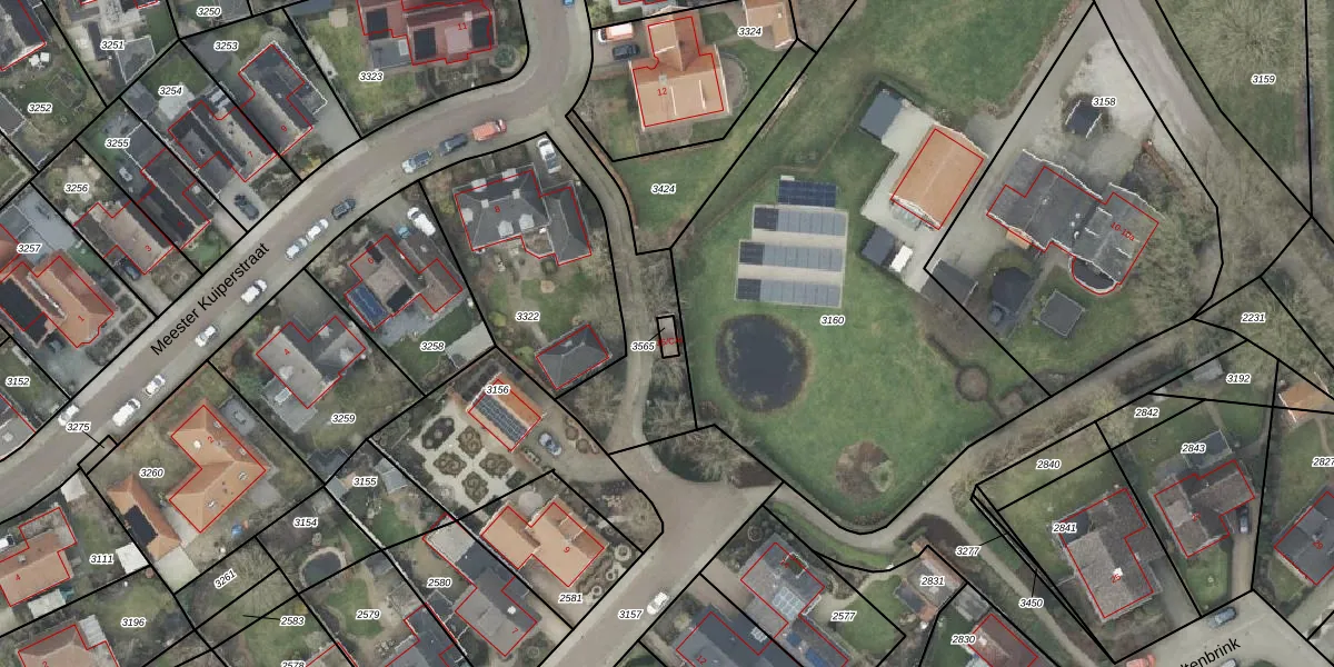 Het adres is gelegen op perceel 3565 in de sectie G en de kadastrale gemeente Tubbergen. De kadastrale aanduiding is aldus TBG02-G-3565. Het perceel is kleiner dan gemiddeld in Tubbergen. Het perceel is 15 m² groot, terwijl het gemiddelde ligt op 6613,21 m². Het kleinste perceel in de kadastrale gemeente is 0 m² groot. De grootste perceeloppervlakte is 30,6 ha. Dit is het enige adres dat aanwezig is op het perceel. De huidige grenzen van het perceel zijn digitaal in de Basisregistratie Kadaster (BRK) geregistreerd op 23-12-2016.