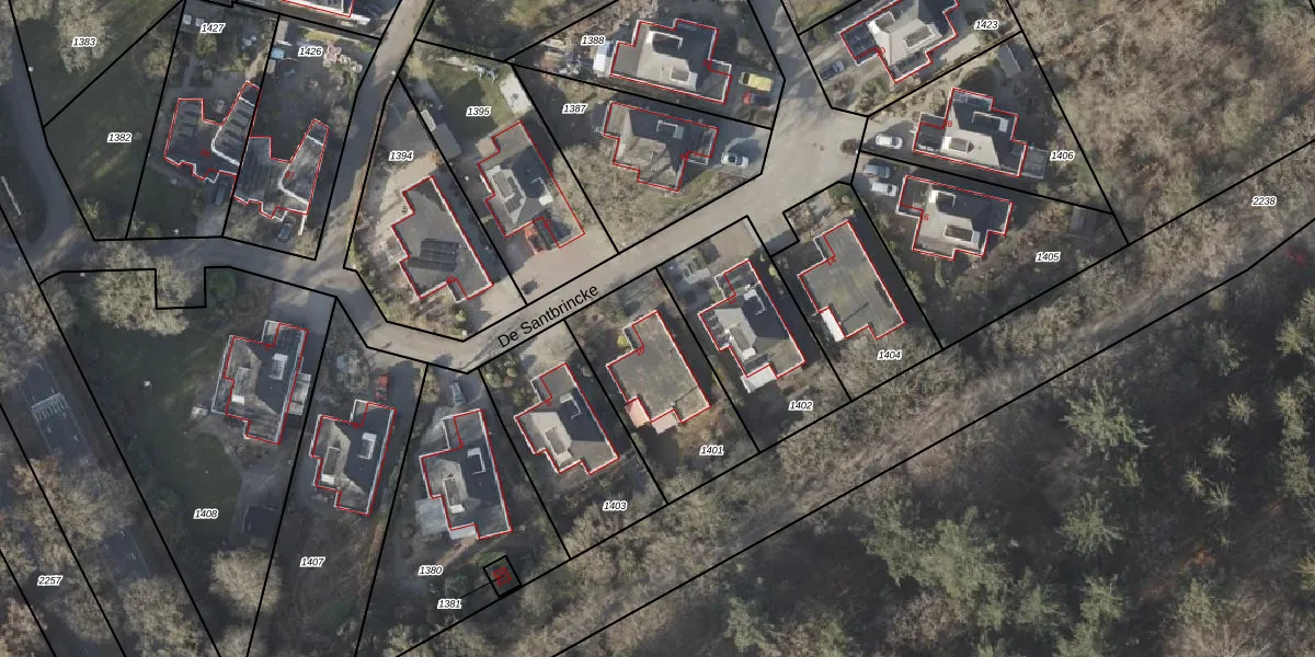 Het perceel waarop De Santbrincke 10 staat heeft een oppervlakte van 518 m². Dit is een groot perceel. De perceeloppervlakte wordt geregistreerd door het Kadaster. Gedetailleerde informatie over de maten van dit perceel kunt u vinden in het rapport Kadastrale kaart met maatvoering van De Santbrincke 10.