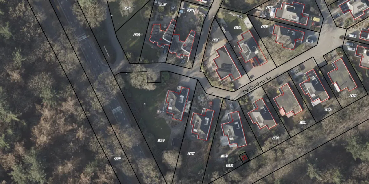 Het perceel waarop De Santbrincke 2 staat heeft een oppervlakte van 1447 m². Dit is een zeer groot perceel. De perceeloppervlakte wordt geregistreerd door het Kadaster. Gedetailleerde informatie over de maten van dit perceel kunt u vinden in het rapport Kadastrale kaart met maatvoering van De Santbrincke 2.