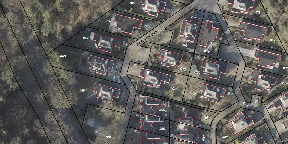 Het perceel waarop De Santbrincke 67 staat heeft een oppervlakte van 737 m². Dit is een groot perceel. De perceeloppervlakte wordt geregistreerd door het Kadaster. Gedetailleerde informatie over de maten van dit perceel kunt u vinden in het rapport Kadastrale kaart met maatvoering van De Santbrincke 67.