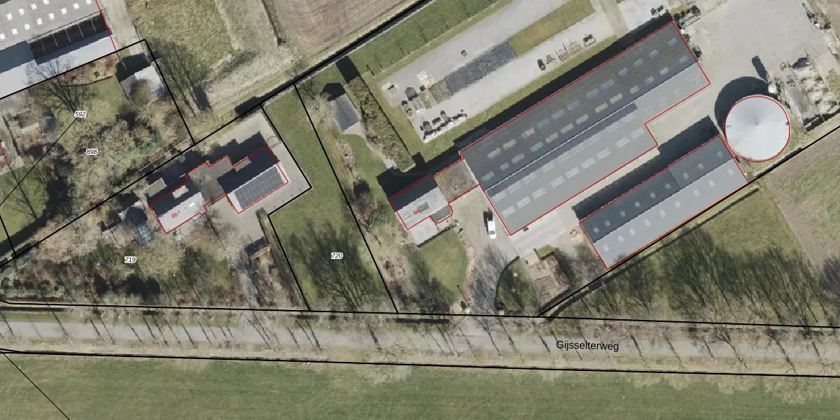 Het perceel waarop Gijsselterweg 6-a staat heeft een oppervlakte van 2,0 ha. Dit is een zeer groot perceel. De perceeloppervlakte wordt geregistreerd door het Kadaster. Gedetailleerde informatie over de maten van dit perceel kunt u vinden in het rapport Kadastrale kaart met maatvoering van Gijsselterweg 6-a.