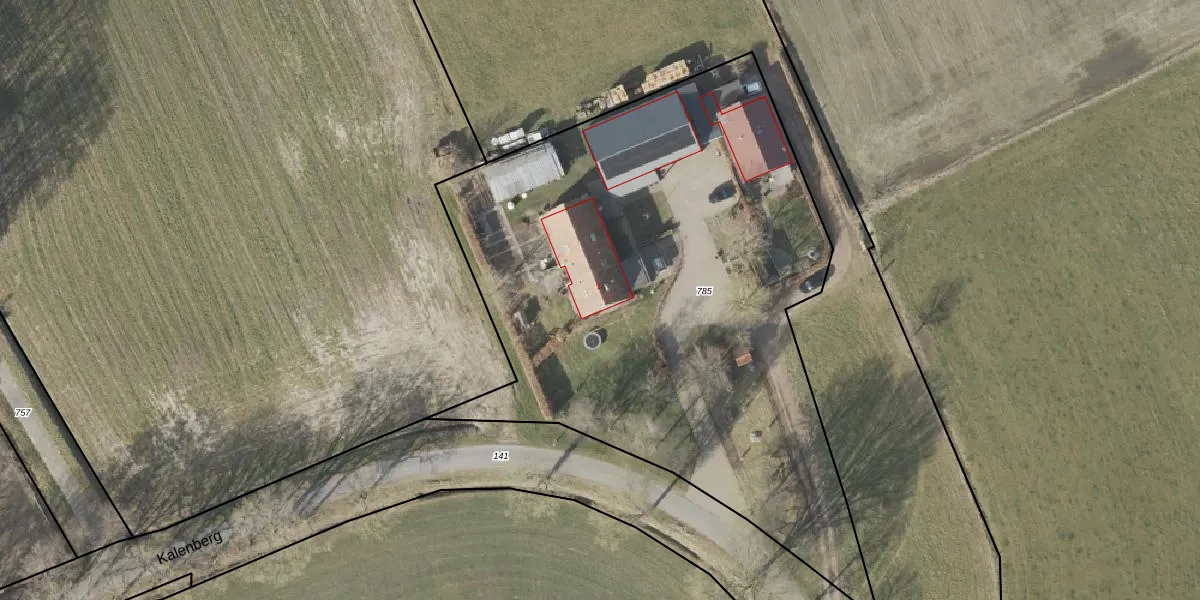 Het perceel waarop Kalenberg 2 staat heeft een oppervlakte van 3513 m². Dit is een zeer groot perceel. De perceeloppervlakte wordt geregistreerd door het Kadaster. Gedetailleerde informatie over de maten van dit perceel kunt u vinden in het rapport Kadastrale kaart met maatvoering van Kalenberg 2.