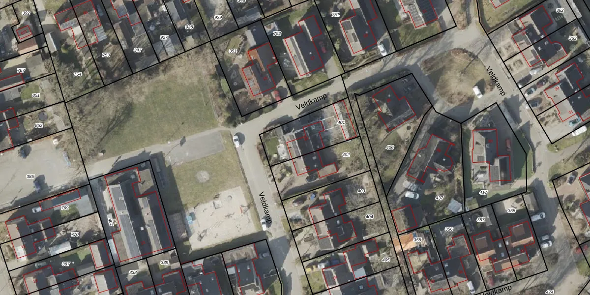 Het perceel waarop Veldkamp 24 staat heeft een oppervlakte van 407 m². Dit is een groot perceel. De perceeloppervlakte wordt geregistreerd door het Kadaster. Gedetailleerde informatie over de maten van dit perceel kunt u vinden in het rapport Kadastrale kaart met maatvoering van Veldkamp 24.