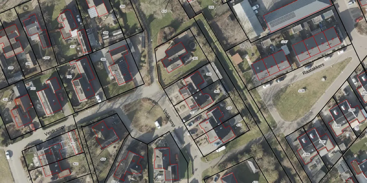 Het perceel waarop Veldkamp 25 staat heeft een oppervlakte van 311 m². Dit is een groot perceel. De perceeloppervlakte wordt geregistreerd door het Kadaster. Gedetailleerde informatie over de maten van dit perceel kunt u vinden in het rapport Kadastrale kaart met maatvoering van Veldkamp 25.