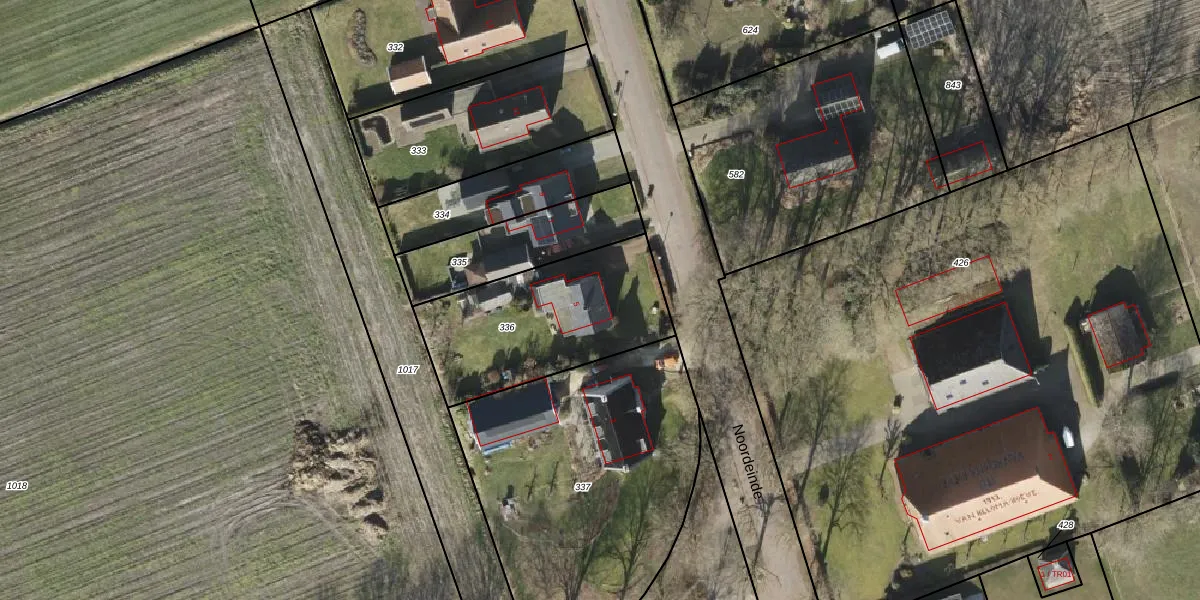 Noordeinde 5 is gelegen op kadastraal perceel OTW02E336. Deze kadastrale aanduiding is uniek en wordt gebruikt door het Kadaster om eigendomsrechten en andere zakelijke rechten vast te leggen. Het perceel maakt onderdeel uit van de kadastrale gemeente Oosterwolde.
