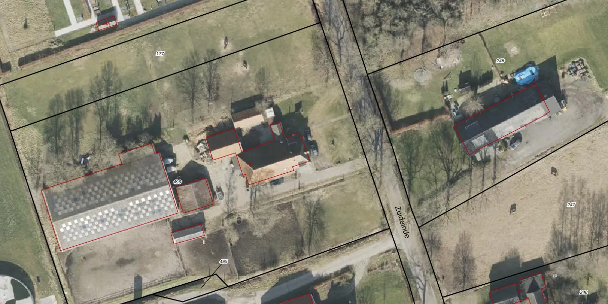 Zuideinde 30 is gelegen op kadastraal perceel OTW02F496. Deze kadastrale aanduiding is uniek en wordt gebruikt door het Kadaster om eigendomsrechten en andere zakelijke rechten vast te leggen. Het perceel maakt onderdeel uit van de kadastrale gemeente Oosterwolde.