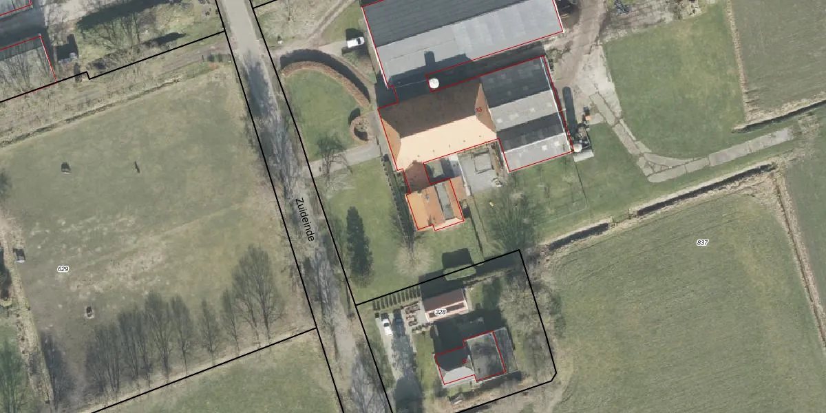 Het perceel waarop Zuideinde 33 staat heeft een oppervlakte van 2,5 ha. Dit is een zeer groot perceel. De perceeloppervlakte wordt geregistreerd door het Kadaster. Gedetailleerde informatie over de maten van dit perceel kunt u vinden in het rapport Kadastrale kaart met maatvoering van Zuideinde 33.