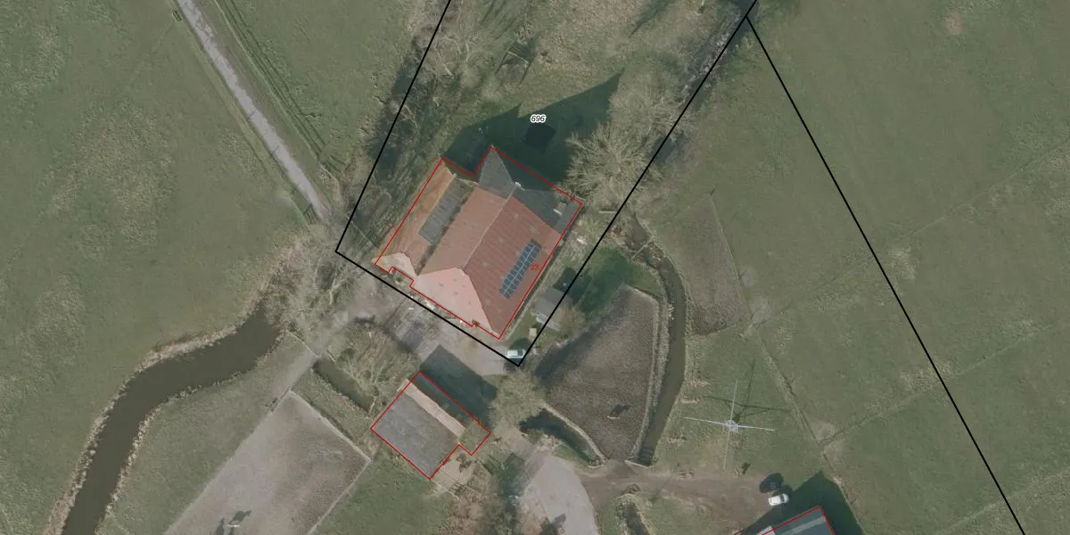 Het adres is gelegen op perceel 696 in de sectie J en de kadastrale gemeente Nieuwland Friesland. De kadastrale aanduiding is aldus NLD01-J-696. Het perceel is kleiner dan gemiddeld in Nieuwland Friesland. Het perceel is 3790 m² groot, terwijl het gemiddelde ligt op 1,4 ha. Het kleinste perceel in de kadastrale gemeente is 0 m² groot. De grootste perceeloppervlakte is 42,1 ha. Dit is het enige adres dat aanwezig is op het perceel. In de Basisregistratie Kadaster (BRK) werden de grenzen van het perceel geregistreerd op 21-01-2019.