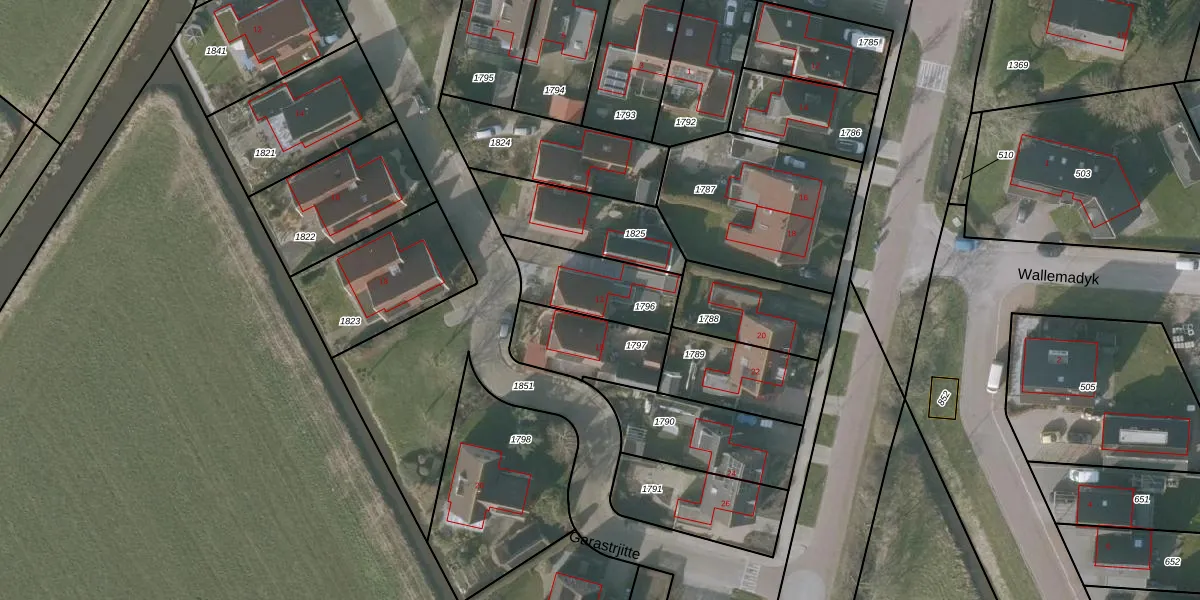 Gebruik de zoekbalk of klik op een perceel voor informatie over de adressen binnen dit perceel.