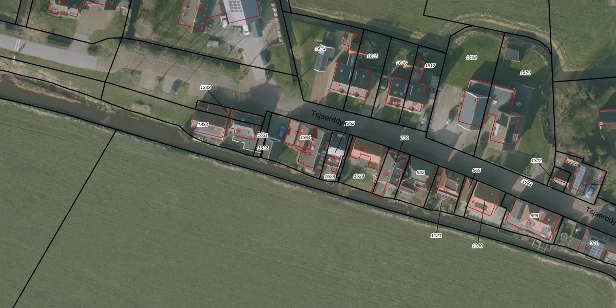 Het perceel waarop Tsjaerddyk 26-B staat heeft een oppervlakte van 316 m². Dit is een groot perceel. De perceeloppervlakte wordt geregistreerd door het Kadaster. Gedetailleerde informatie over de maten van dit perceel kunt u vinden in het rapport Kadastrale kaart met maatvoering van Tsjaerddyk 26-B.