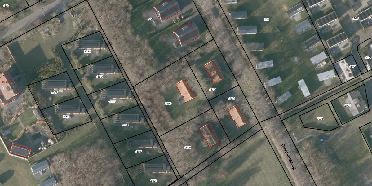 Het perceel waarop Dirkmansweg 12 staat heeft een oppervlakte van 1000 m². Dit is een zeer groot perceel. De perceeloppervlakte wordt geregistreerd door het Kadaster. Gedetailleerde informatie over de maten van dit perceel kunt u vinden in het rapport Kadastrale kaart met maatvoering van Dirkmansweg 12.