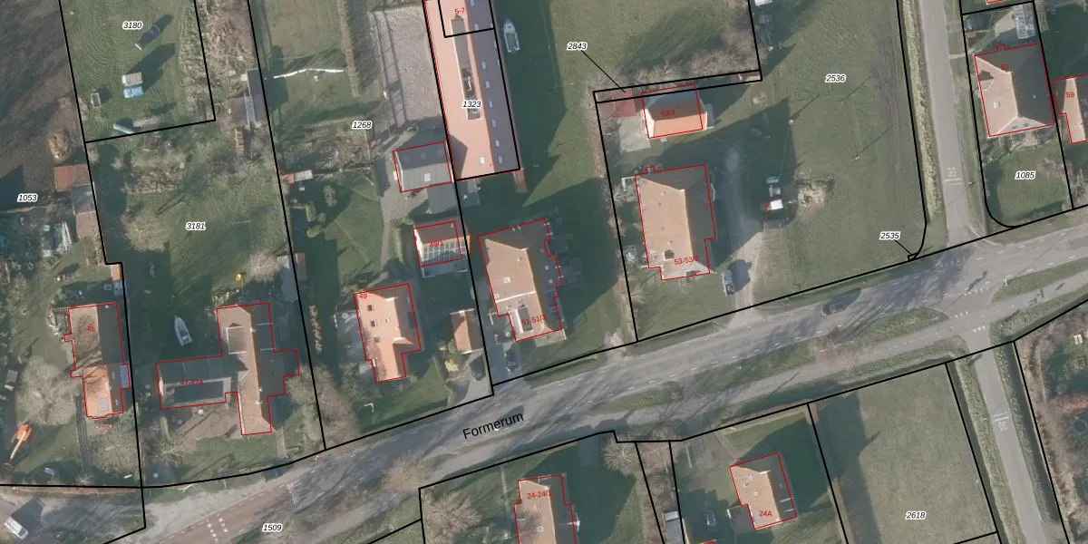 Het perceel waarop Formerum 51-3 staat heeft een oppervlakte van 3697 m². Dit is een zeer groot perceel. De perceeloppervlakte wordt geregistreerd door het Kadaster. Gedetailleerde informatie over de maten van dit perceel kunt u vinden in het rapport Kadastrale kaart met maatvoering van Formerum 51-3.