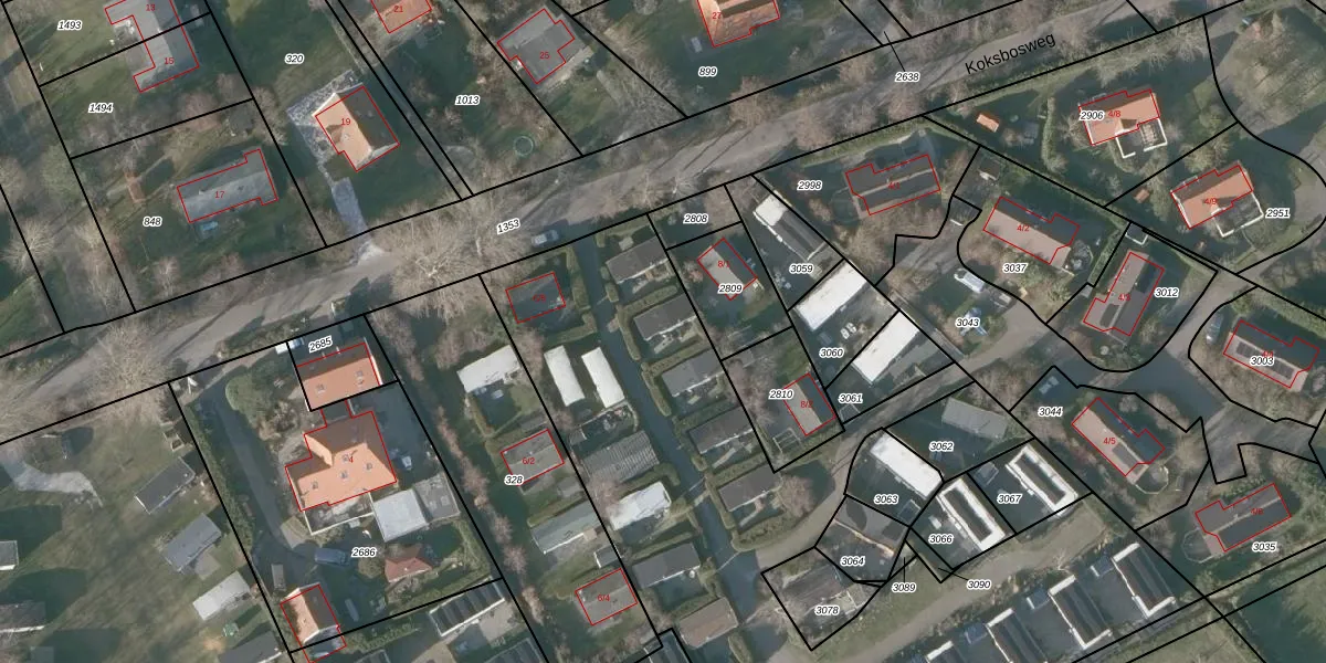 Het perceel waarop Koksbosweg 6-41 staat heeft een oppervlakte van 4782 m². Dit is een zeer groot perceel. De perceeloppervlakte wordt geregistreerd door het Kadaster. Gedetailleerde informatie over de maten van dit perceel kunt u vinden in het rapport Kadastrale kaart met maatvoering van Koksbosweg 6-41.