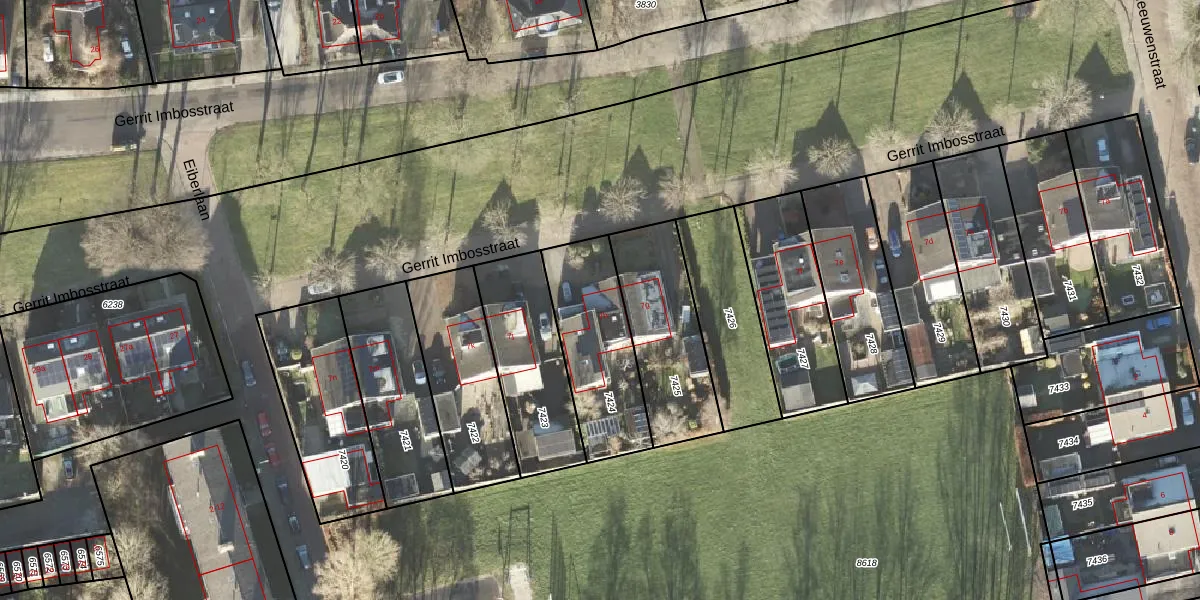 Het perceel waarop Gerrit Imbosstraat 7-h staat heeft een oppervlakte van 423 m². Dit is een groot perceel. De perceeloppervlakte wordt geregistreerd door het Kadaster. Gedetailleerde informatie over de maten van dit perceel kunt u vinden in het rapport Kadastrale kaart met maatvoering van Gerrit Imbosstraat 7-h.