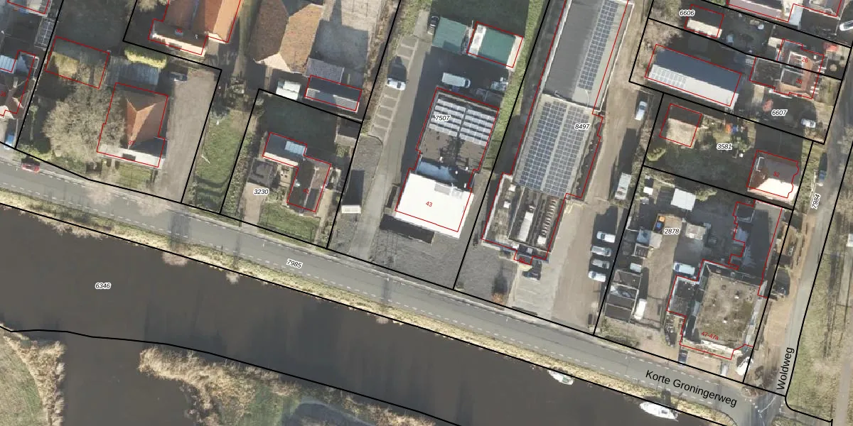 Korte Groningerweg 43 is gelegen op kadastraal perceel HGZ00K7507. Deze kadastrale aanduiding is uniek en wordt gebruikt door het Kadaster om eigendomsrechten en andere zakelijke rechten vast te leggen. Het perceel maakt onderdeel uit van de kadastrale gemeente Hoogezand.
