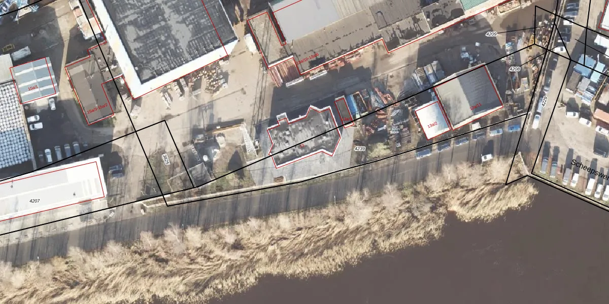 Het perceel waarop Scheepswervenweg 13 staat heeft een oppervlakte van 1825 m². Dit is een zeer groot perceel. De perceeloppervlakte wordt geregistreerd door het Kadaster. Gedetailleerde informatie over de maten van dit perceel kunt u vinden in het rapport Kadastrale kaart met maatvoering van Scheepswervenweg 13.