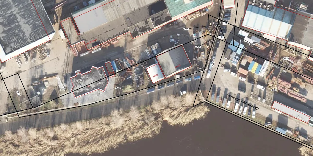 Het perceel waarop Scheepswervenweg 13-a-2 staat heeft een oppervlakte van 1825 m². Dit is een zeer groot perceel. De perceeloppervlakte wordt geregistreerd door het Kadaster. Gedetailleerde informatie over de maten van dit perceel kunt u vinden in het rapport Kadastrale kaart met maatvoering van Scheepswervenweg 13-a-2.