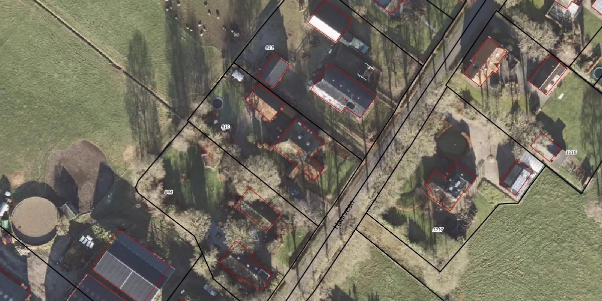 Het perceel waarop Haarveen 10 staat heeft een oppervlakte van 1400 m². Dit is een zeer groot perceel. De perceeloppervlakte wordt geregistreerd door het Kadaster. Gedetailleerde informatie over de maten van dit perceel kunt u vinden in het rapport Kadastrale kaart met maatvoering van Haarveen 10.