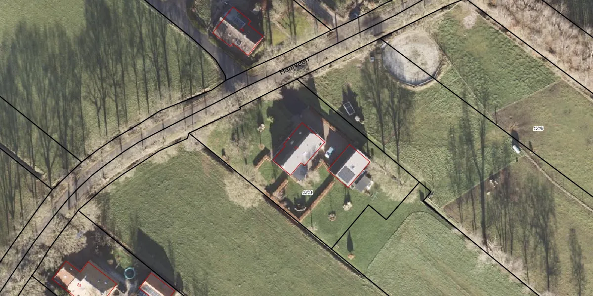 Het perceel waarop Haarveen 17 staat heeft een oppervlakte van 2120 m². Dit is een zeer groot perceel. De perceeloppervlakte wordt geregistreerd door het Kadaster. Gedetailleerde informatie over de maten van dit perceel kunt u vinden in het rapport Kadastrale kaart met maatvoering van Haarveen 17.
