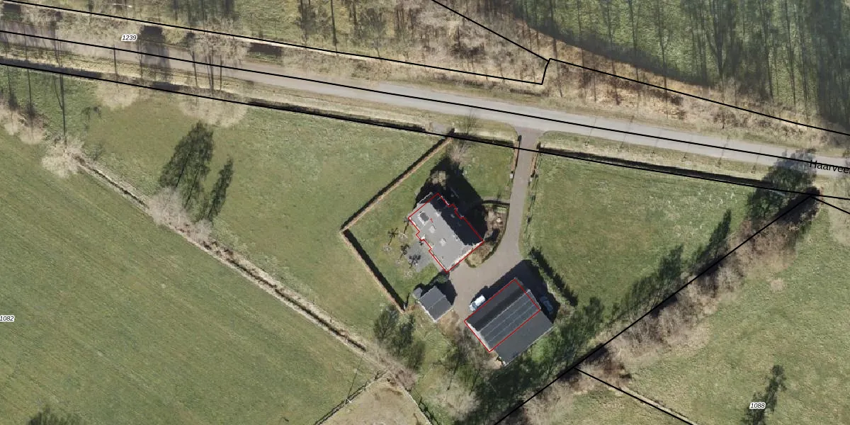 Het perceel waarop Haarveensedijk 7 staat heeft een oppervlakte van 2,0 ha. Dit is een zeer groot perceel. De perceeloppervlakte wordt geregistreerd door het Kadaster. Gedetailleerde informatie over de maten van dit perceel kunt u vinden in het rapport Kadastrale kaart met maatvoering van Haarveensedijk 7.