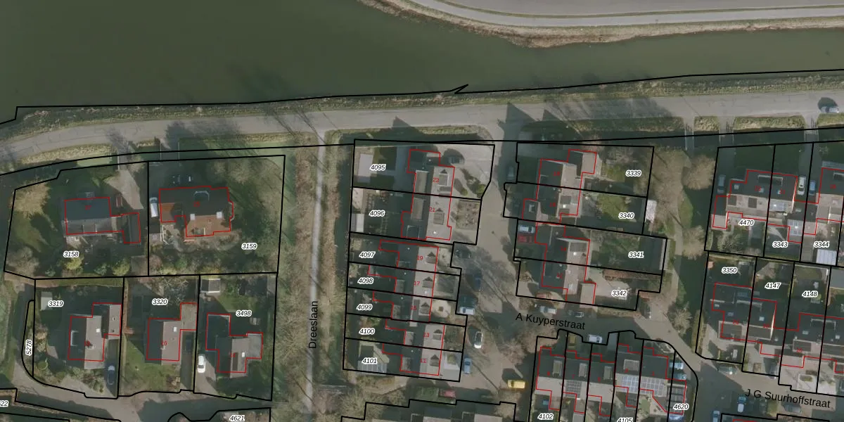 Het perceel waarop A Kuyperstraat 21 staat heeft een oppervlakte van 332 m². Dit is een groot perceel. De perceeloppervlakte wordt geregistreerd door het Kadaster. Gedetailleerde informatie over de maten van dit perceel kunt u vinden in het rapport Kadastrale kaart met maatvoering van A Kuyperstraat 21.