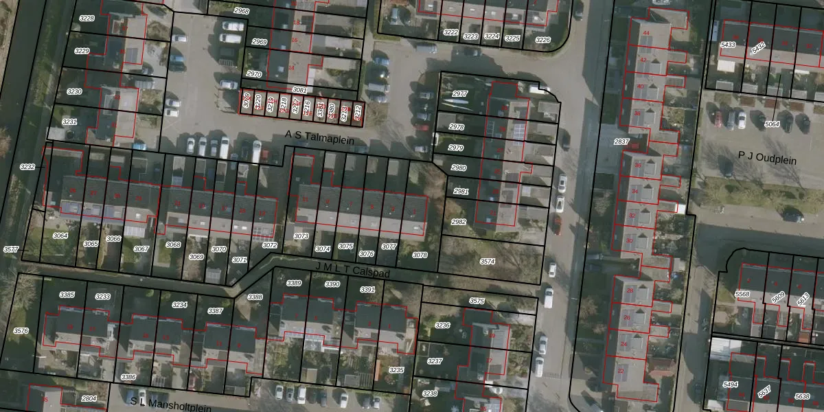 Gebruik de zoekbalk of klik op een perceel voor informatie over de adressen binnen dit perceel.