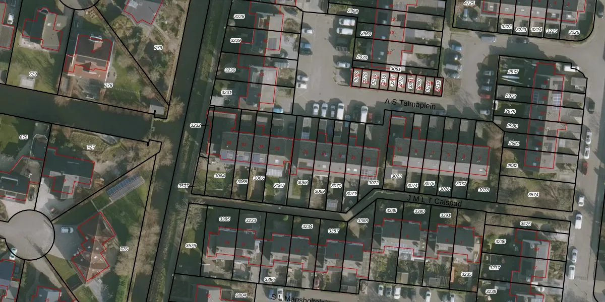 Gebruik de zoekbalk of klik op een perceel voor informatie over de adressen binnen dit perceel.