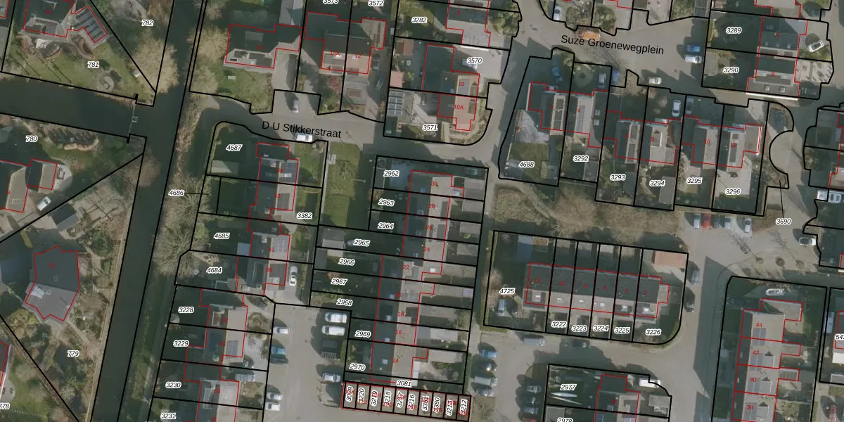 Gebruik de zoekbalk of klik op een perceel voor informatie over de adressen binnen dit perceel.