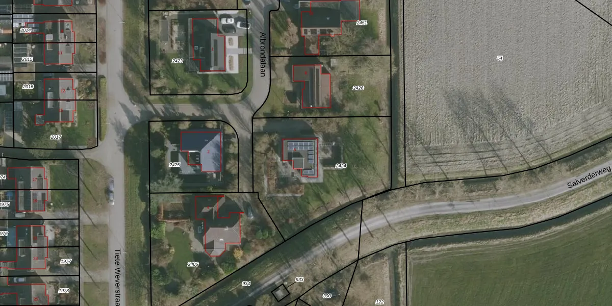 Het perceel waarop Albrondalaan 6 staat heeft een oppervlakte van 1412 m². Dit is een zeer groot perceel. De perceeloppervlakte wordt geregistreerd door het Kadaster. Gedetailleerde informatie over de maten van dit perceel kunt u vinden in het rapport Kadastrale kaart met maatvoering van Albrondalaan 6.