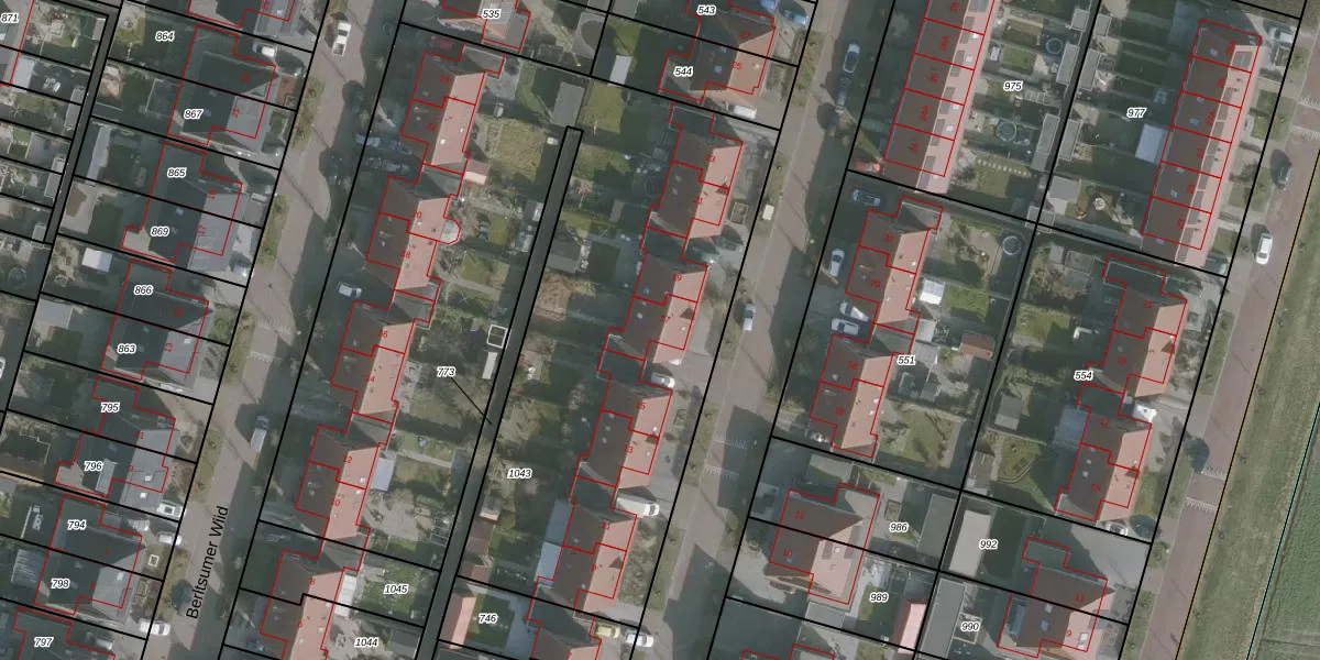 Het adres is gelegen op perceel 1043 in de sectie E en de kadastrale gemeente Franeker. De kadastrale aanduiding is aldus FNK00-E-1043. Het perceel is met 4533 m² relatief groot. Het gemiddelde ligt in de kadastrale gemeente Franeker op 2404,51 m². Het grootste perceel in de kadastrale gemeente is 30,5 ha. Het kleinste perceel heeft een oppervlakte van 0 m². Er zijn 16 adressen aanwezig op het perceel. De huidige grenzen van het perceel zijn digitaal in de Basisregistratie Kadaster (BRK) geregistreerd op 21-01-2022.