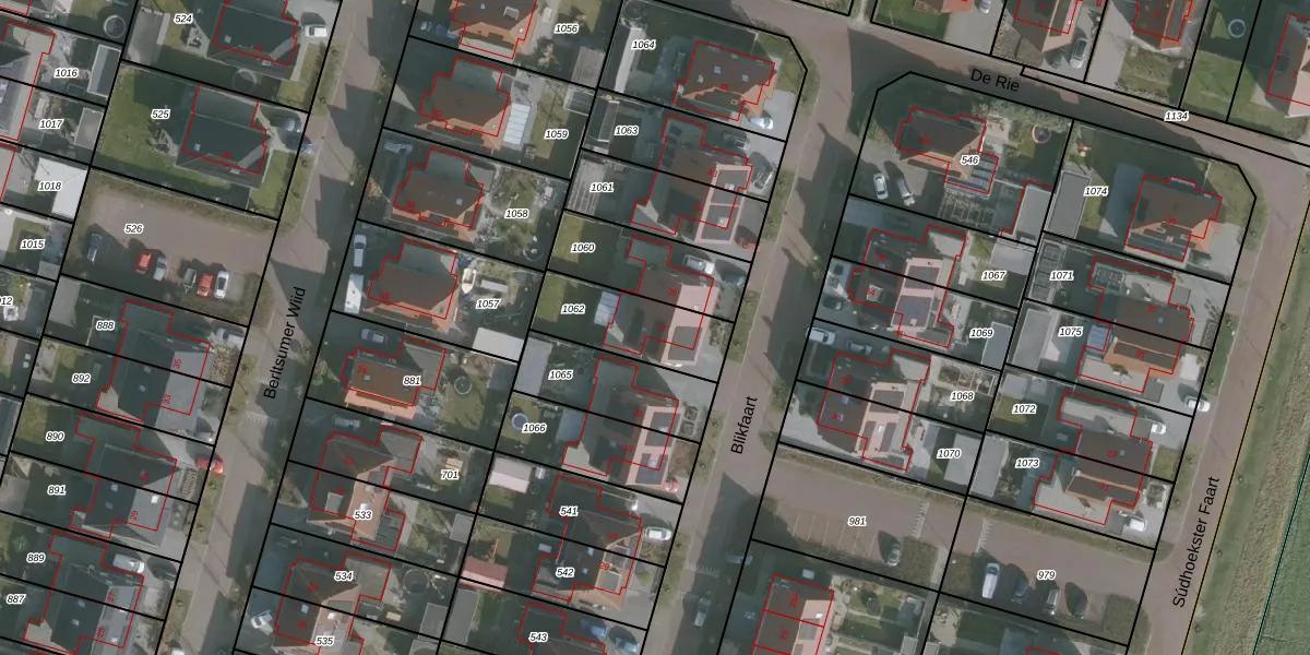 Gebruik de zoekbalk of klik op een perceel voor informatie over de adressen binnen dit perceel.