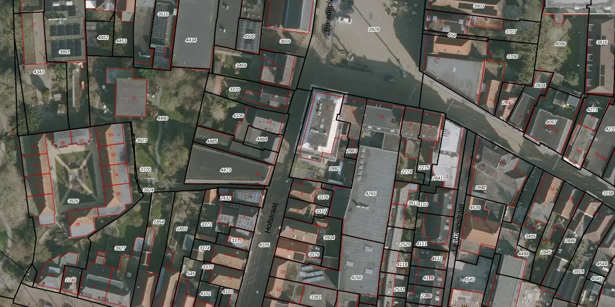 Gebruik de zoekbalk of klik op een perceel voor informatie over de adressen binnen dit perceel.