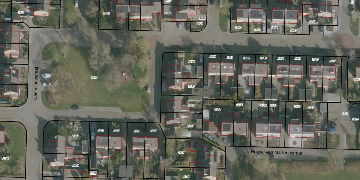 Het perceel waarop Cammingastraat 18 staat heeft een oppervlakte van 223 m². Dit is een middelgroot perceel. De perceeloppervlakte wordt geregistreerd door het Kadaster. Gedetailleerde informatie over de maten van dit perceel kunt u vinden in het rapport Kadastrale kaart met maatvoering van Cammingastraat 18.