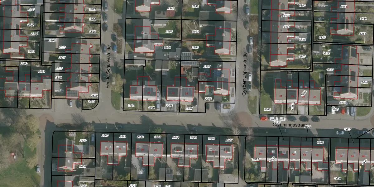 Gebruik de zoekbalk of klik op een perceel voor informatie over de adressen binnen dit perceel.