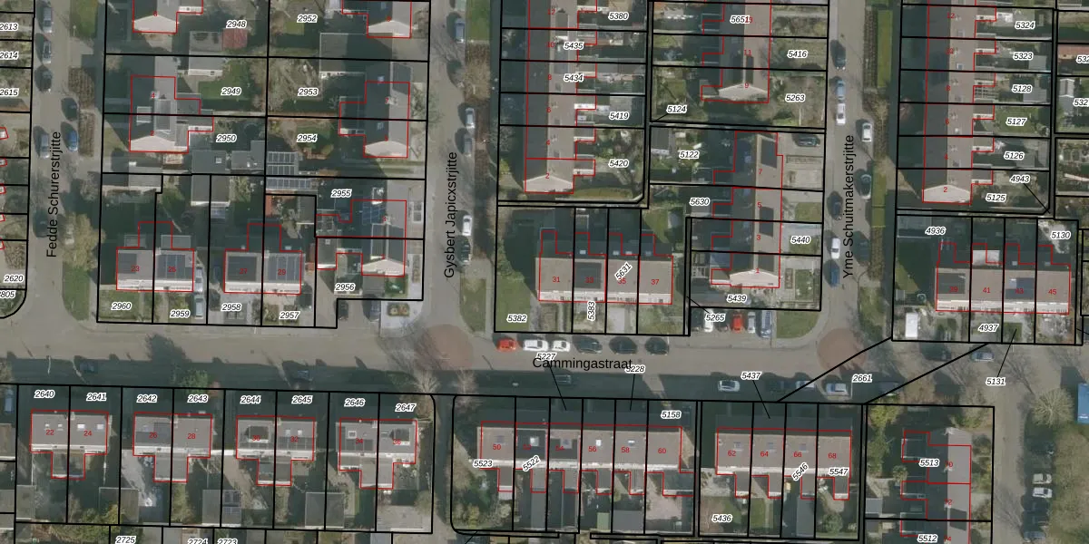 Het perceel waarop Cammingastraat 31 staat heeft een oppervlakte van 331 m². Dit is een groot perceel. De perceeloppervlakte wordt geregistreerd door het Kadaster. Gedetailleerde informatie over de maten van dit perceel kunt u vinden in het rapport Kadastrale kaart met maatvoering van Cammingastraat 31.