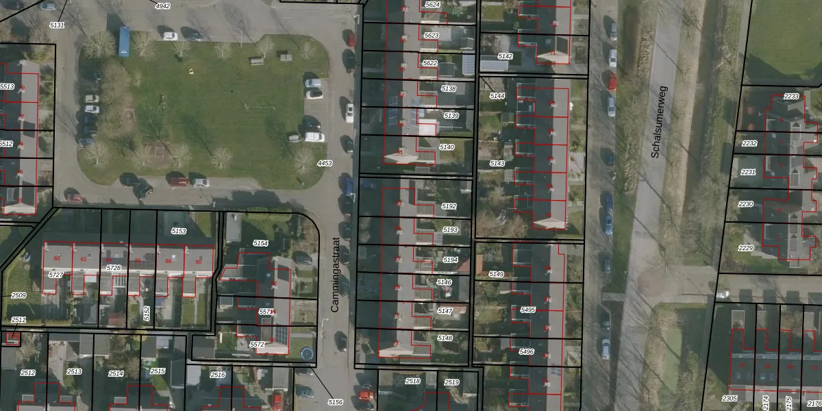 Cammingastraat 63 is gelegen op kadastraal perceel FNK00B5192. Deze kadastrale aanduiding is uniek en wordt gebruikt door het Kadaster om eigendomsrechten en andere zakelijke rechten vast te leggen. Het perceel maakt onderdeel uit van de kadastrale gemeente Franeker.