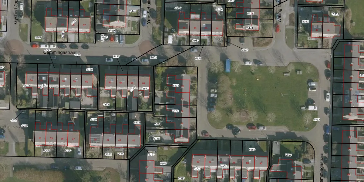 Het perceel waarop Cammingastraat 70 staat heeft een oppervlakte van 492 m². Dit is een groot perceel. De perceeloppervlakte wordt geregistreerd door het Kadaster. Gedetailleerde informatie over de maten van dit perceel kunt u vinden in het rapport Kadastrale kaart met maatvoering van Cammingastraat 70.