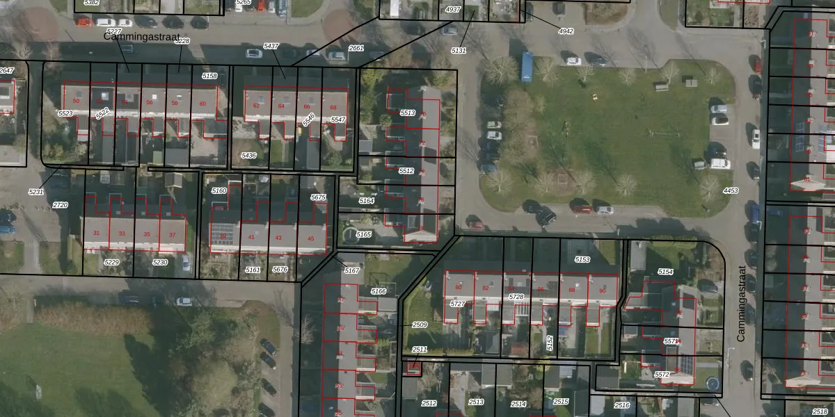 Het perceel waarop Cammingastraat 76 staat heeft een oppervlakte van 200 m². Dit is een middelgroot perceel. De perceeloppervlakte wordt geregistreerd door het Kadaster. Gedetailleerde informatie over de maten van dit perceel kunt u vinden in het rapport Kadastrale kaart met maatvoering van Cammingastraat 76.