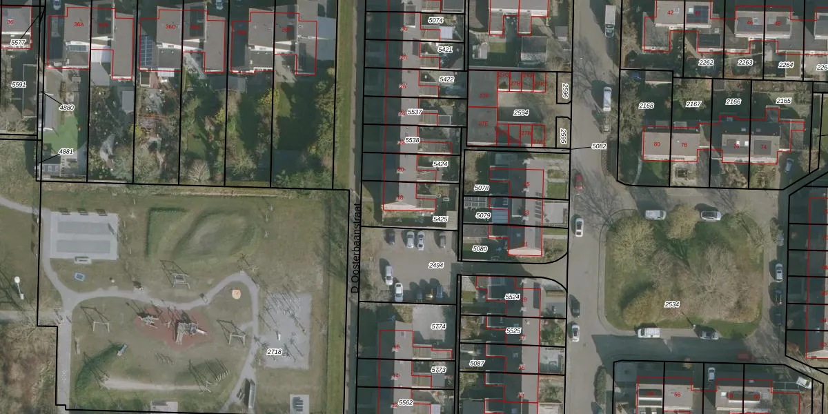 Het perceel waarop D Oosterbaanstraat 18 staat heeft een oppervlakte van 265 m². Dit is een middelgroot perceel. De perceeloppervlakte wordt geregistreerd door het Kadaster. Gedetailleerde informatie over de maten van dit perceel kunt u vinden in het rapport Kadastrale kaart met maatvoering van D Oosterbaanstraat 18.