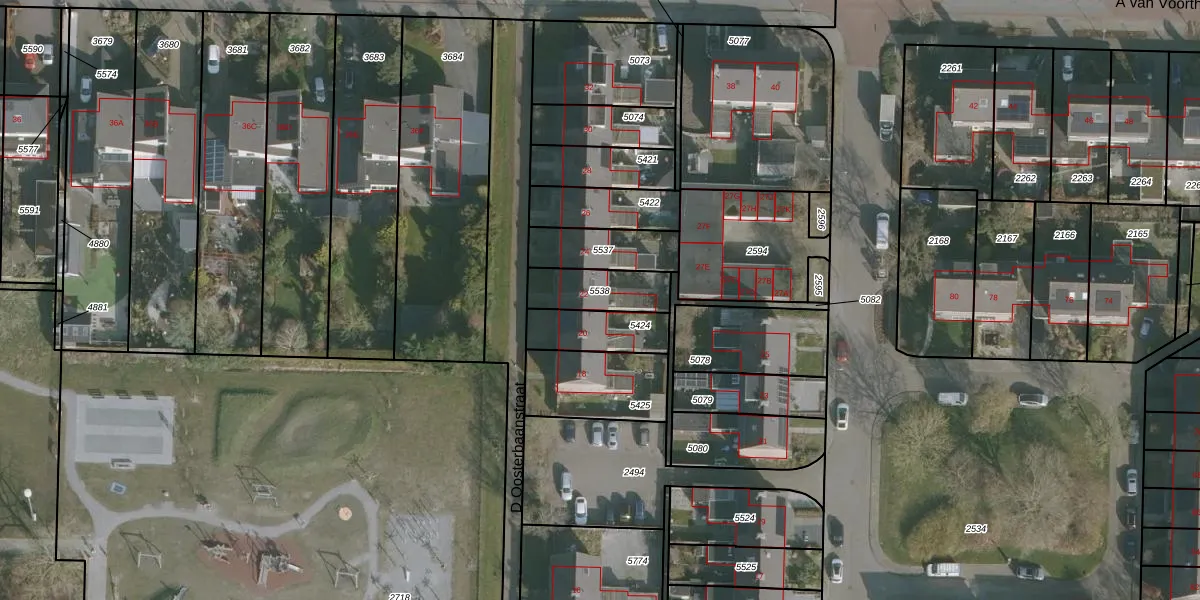 Het perceel waarop D Oosterbaanstraat 22 staat heeft een oppervlakte van 162 m². Dit is een middelgroot perceel. De perceeloppervlakte wordt geregistreerd door het Kadaster. Gedetailleerde informatie over de maten van dit perceel kunt u vinden in het rapport Kadastrale kaart met maatvoering van D Oosterbaanstraat 22.