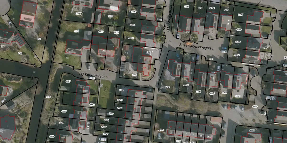 D U Stikkerstraat 10-A is gelegen op kadastraal perceel FNK00B3571. Deze kadastrale aanduiding is uniek en wordt gebruikt door het Kadaster om eigendomsrechten en andere zakelijke rechten vast te leggen. Het perceel maakt onderdeel uit van de kadastrale gemeente Franeker.