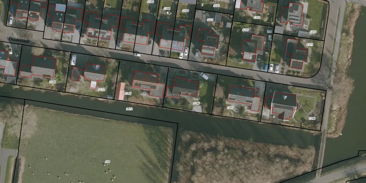 Duukelaar 5 is gelegen op kadastraal perceel RIE00E1146. Deze kadastrale aanduiding is uniek en wordt gebruikt door het Kadaster om eigendomsrechten en andere zakelijke rechten vast te leggen. Het perceel maakt onderdeel uit van de kadastrale gemeente Ried.