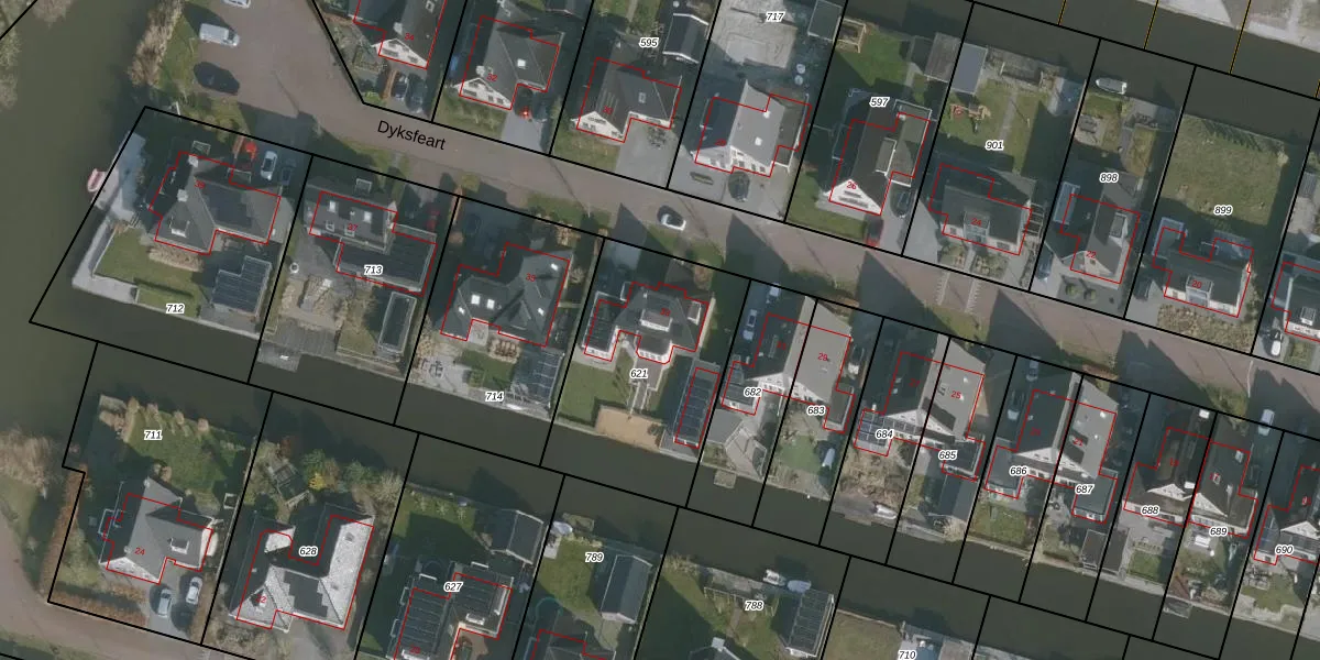 Het perceel waarop Dyksfeart 33 staat heeft een oppervlakte van 831 m². Dit is een groot perceel. De perceeloppervlakte wordt geregistreerd door het Kadaster. Gedetailleerde informatie over de maten van dit perceel kunt u vinden in het rapport Kadastrale kaart met maatvoering van Dyksfeart 33.