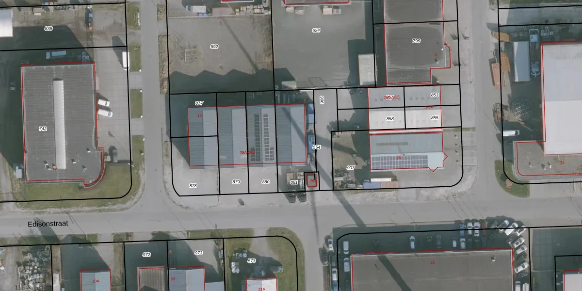 Edisonstraat 28-A is gelegen op kadastraal perceel FNK00F881. Deze kadastrale aanduiding is uniek en wordt gebruikt door het Kadaster om eigendomsrechten en andere zakelijke rechten vast te leggen. Het perceel maakt onderdeel uit van de kadastrale gemeente Franeker.