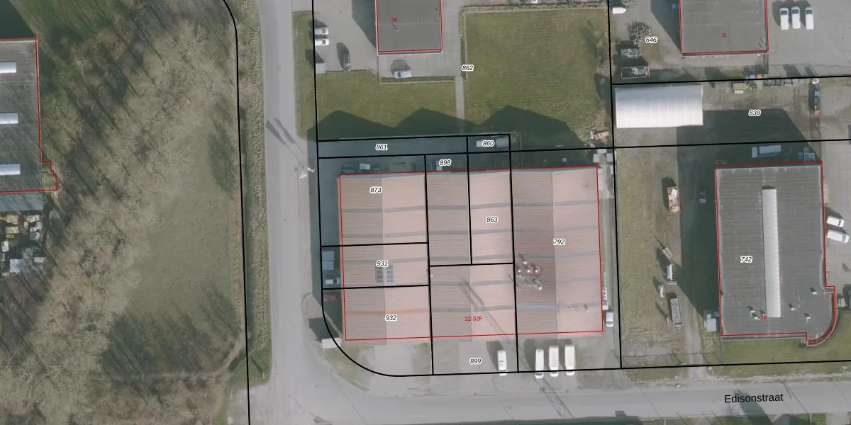 Edisonstraat 32-B is gelegen op kadastraal perceel FNK00F873. Deze kadastrale aanduiding is uniek en wordt gebruikt door het Kadaster om eigendomsrechten en andere zakelijke rechten vast te leggen. Het perceel maakt onderdeel uit van de kadastrale gemeente Franeker.
