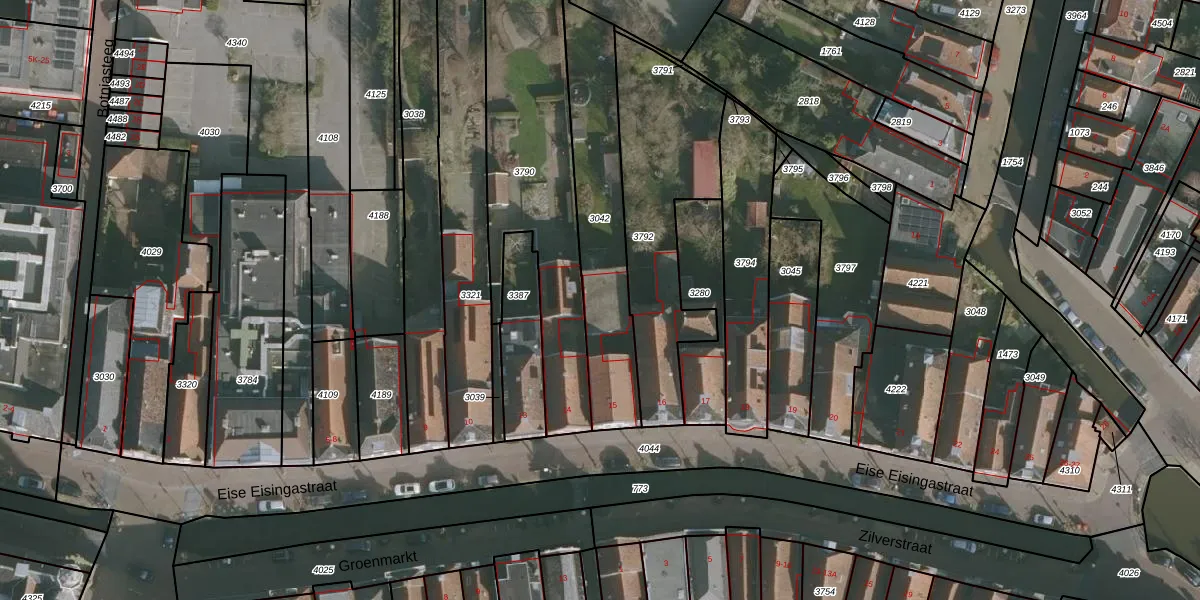 Eise Eisingastraat 15 is gelegen op kadastraal perceel FNK00A3042. Deze kadastrale aanduiding is uniek en wordt gebruikt door het Kadaster om eigendomsrechten en andere zakelijke rechten vast te leggen. Het perceel maakt onderdeel uit van de kadastrale gemeente Franeker.