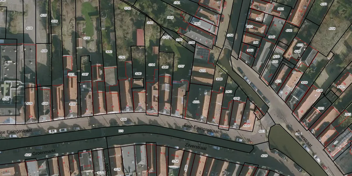 Eise Eisingastraat 20 is gelegen op kadastraal perceel FNK00A3797. Deze kadastrale aanduiding is uniek en wordt gebruikt door het Kadaster om eigendomsrechten en andere zakelijke rechten vast te leggen. Het perceel maakt onderdeel uit van de kadastrale gemeente Franeker.