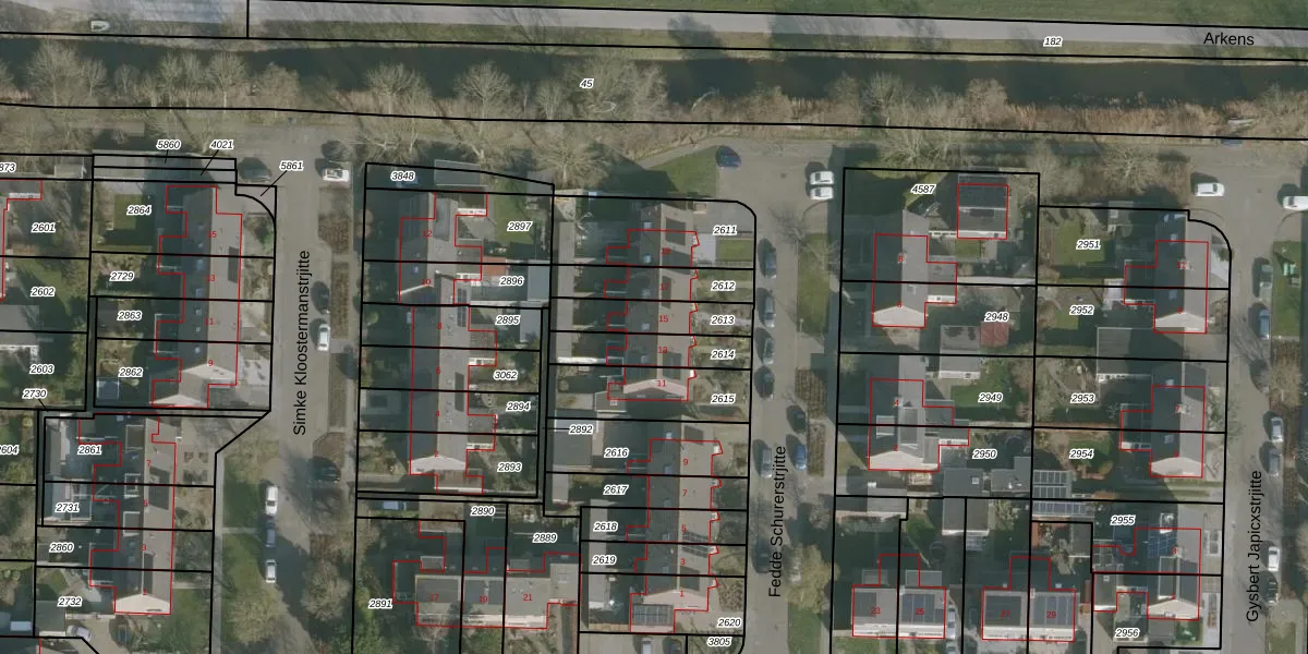 Gebruik de zoekbalk of klik op een perceel voor informatie over de adressen binnen dit perceel.