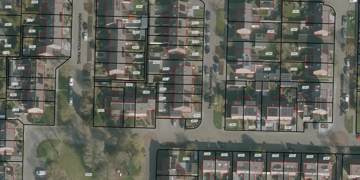 Fedde Schurerstrjitte 5 is gelegen op kadastraal perceel FNK00B2618. Deze kadastrale aanduiding is uniek en wordt gebruikt door het Kadaster om eigendomsrechten en andere zakelijke rechten vast te leggen. Het perceel maakt onderdeel uit van de kadastrale gemeente Franeker.